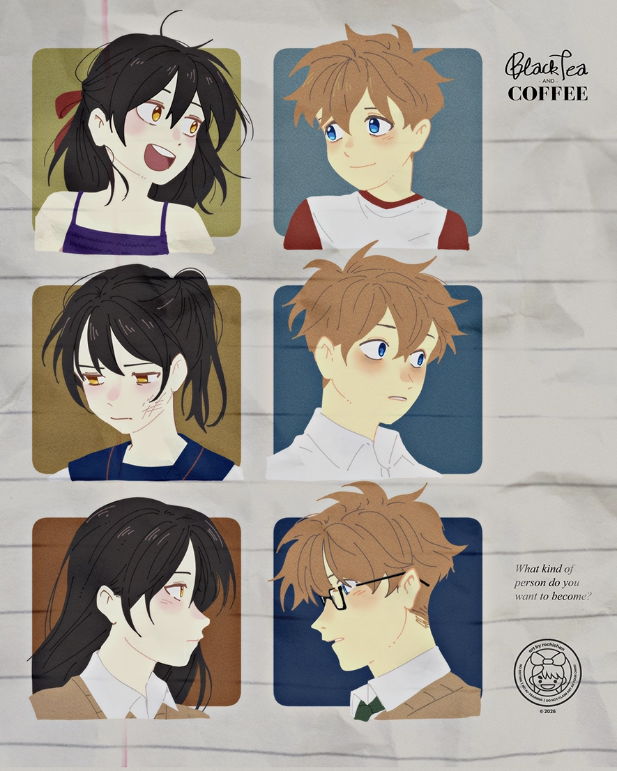 An original piece of my characters Misa and Hiro from the webcomic Black Tea and Coffee